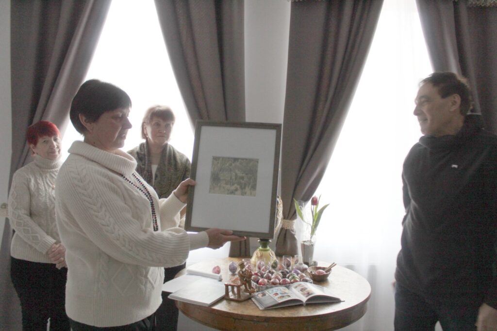 Відкрила виставку старша наукова співробітниця музею Алла Подвезько.  Вона розповіла, що для художнього музею велика честь експонувати твори талановитих  митців, які вже давно стали друзями музею  та подарували багато своїх картин в колекцію.  Цього разу теж не обійшлося без подарунків – Ігор Швачунов подарував графічну роботу «На подвір’ї» та монографічний альбом про знаного українського  художника М. Л. Нікітенка, а також цікаву роботу межирицького  гончара С. Г.Семенченка.